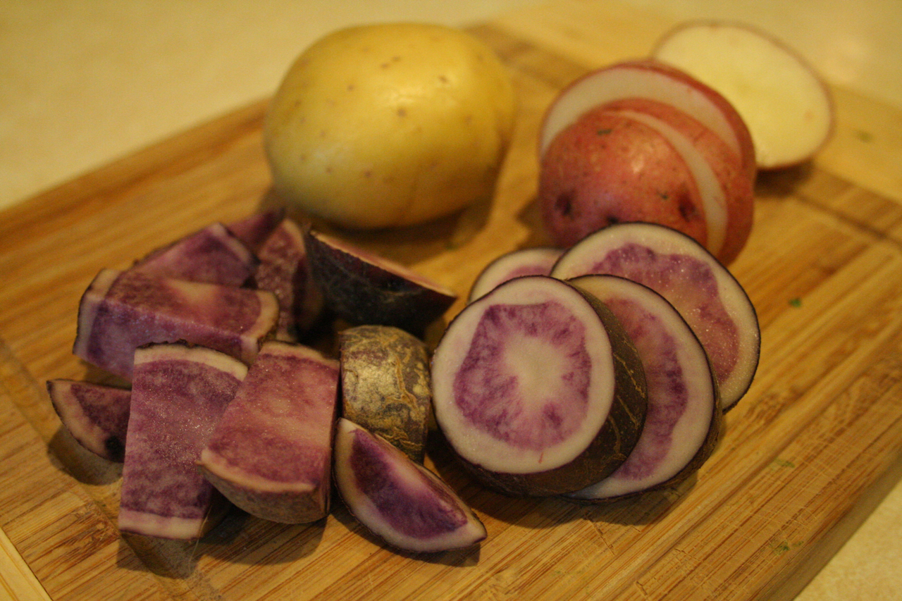 I have a better appreciation of potatoes these days. These purple beauties became filling for my vegetarian tacos tonight. I almost felt badly eating the beautiful purple fractals.