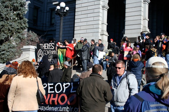 The kids were yelling into the microphone. Incoherently. The crowd of Occupiers grew restless and detached under the cloudless sky in downtown Denver.