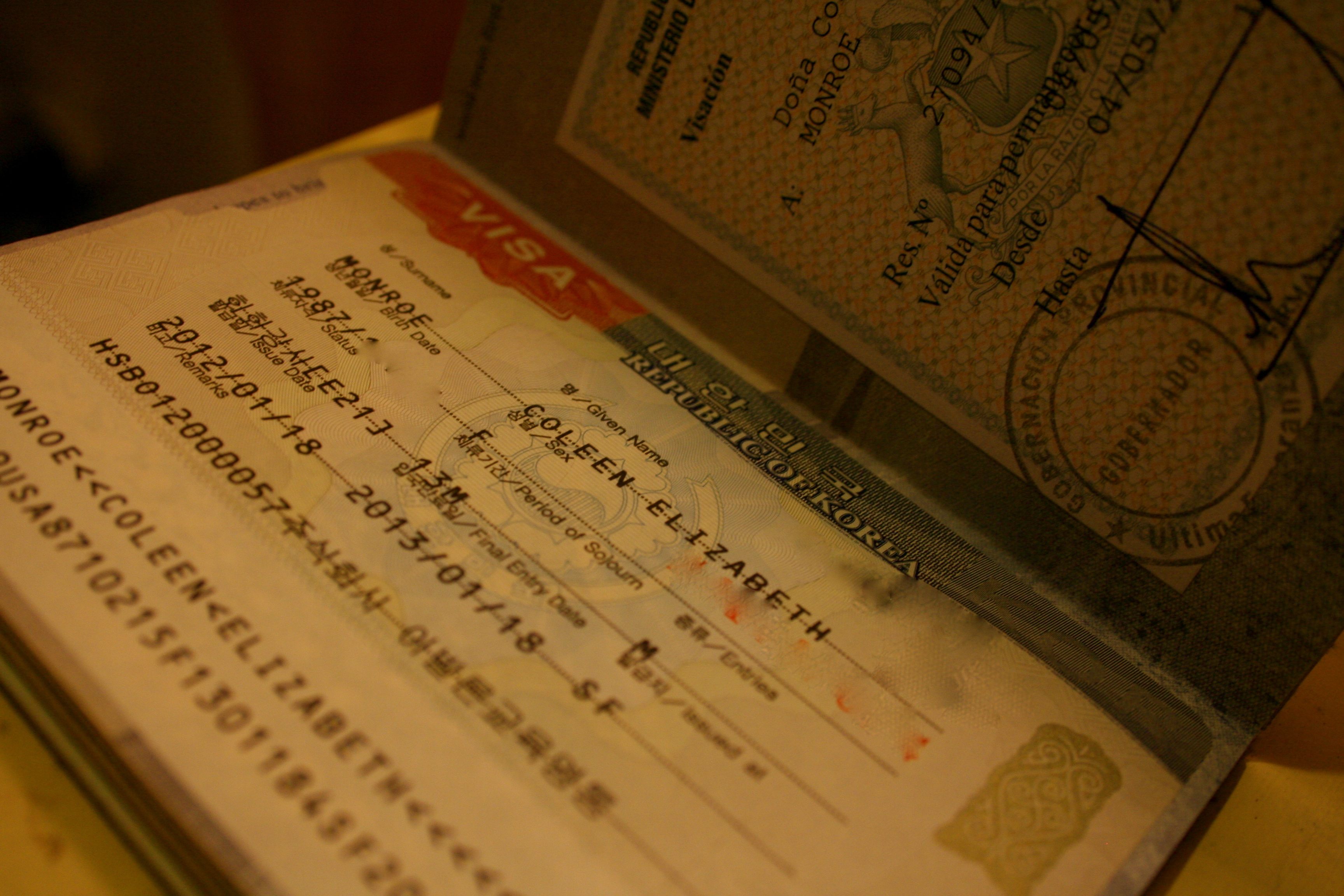 118 days of legwork to get this sticker in my passport. Enough time to allow me to learn the Korean (Hanguel) alphabet and be able to sound out the words on it. Enough time to take two semesters worth of intensive French classes. Enough time to have eight skype and phone interviews. Make amazing new friends. Turn 24. Cut my hair off. Get two jobs. Run up a huge credit card bill. Pay it off. Twice.