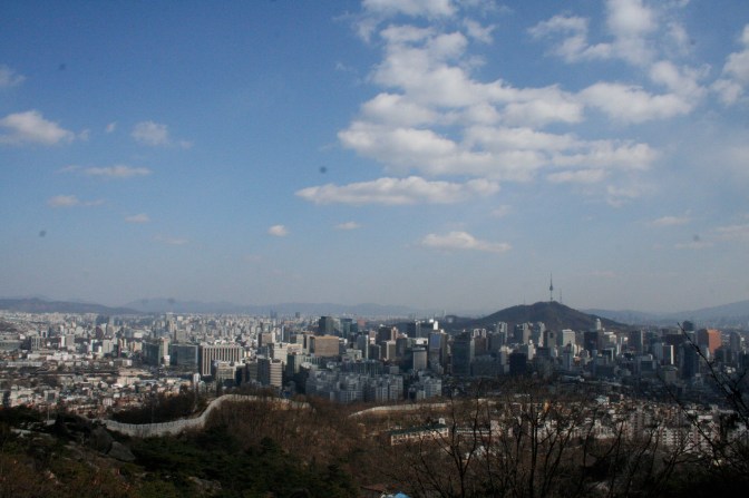 The whole of Seoul stretched out below us. It reminded me forcefully of Cerro San Cristobal in Santiago de Chile, one year ago. Buildings in a valley, as far as the eye can see.