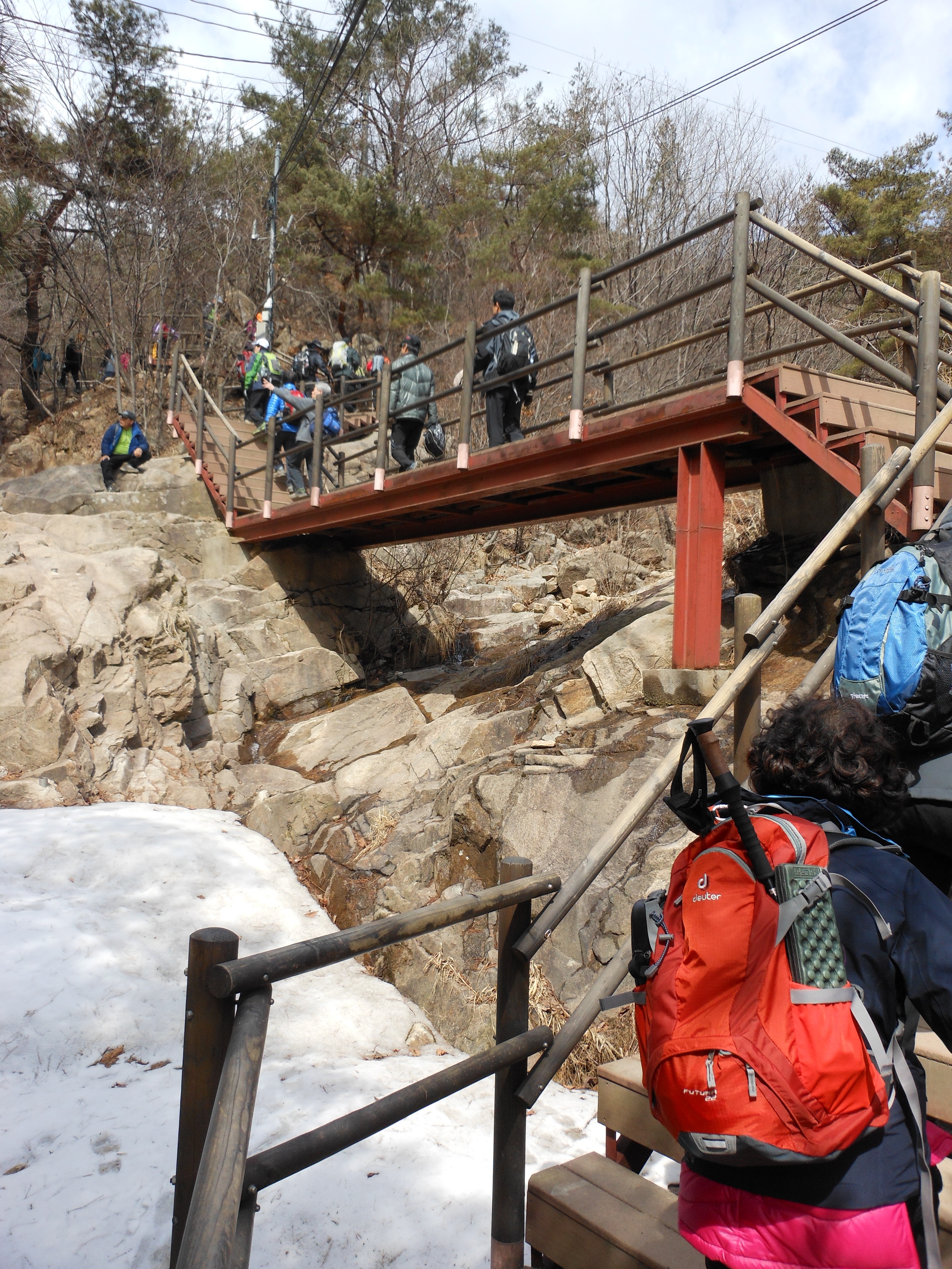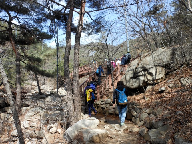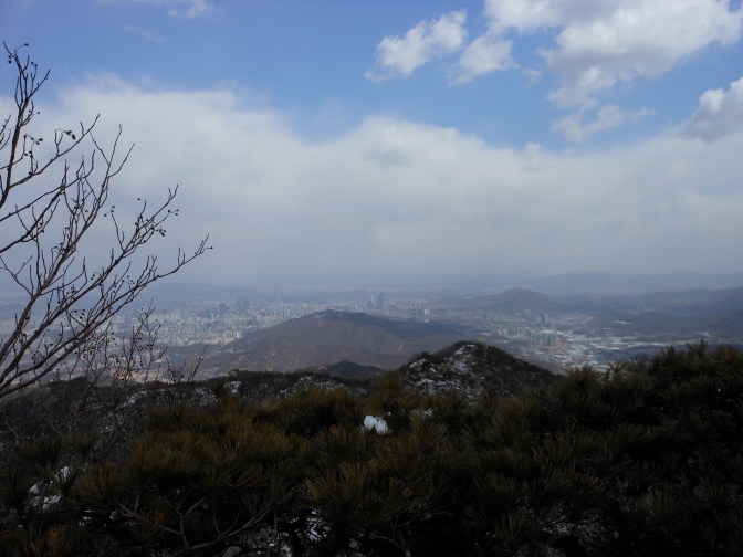 This is a fairly popular hiking route, well-covered by the various expat blogs in Korea. Despite this, I was the only non-Korean I saw on the mountain the whole day. It was a bit surreal being adrift in the sea of well-outfitted and noisy hikers, who ranged in age from three to at least my grandparents’ age. Unfortunately, one can never truly outrun the city. It followed me heavily into the forest, the trail teasing me with the fact that I couldn’t escape crowds and concrete even here.