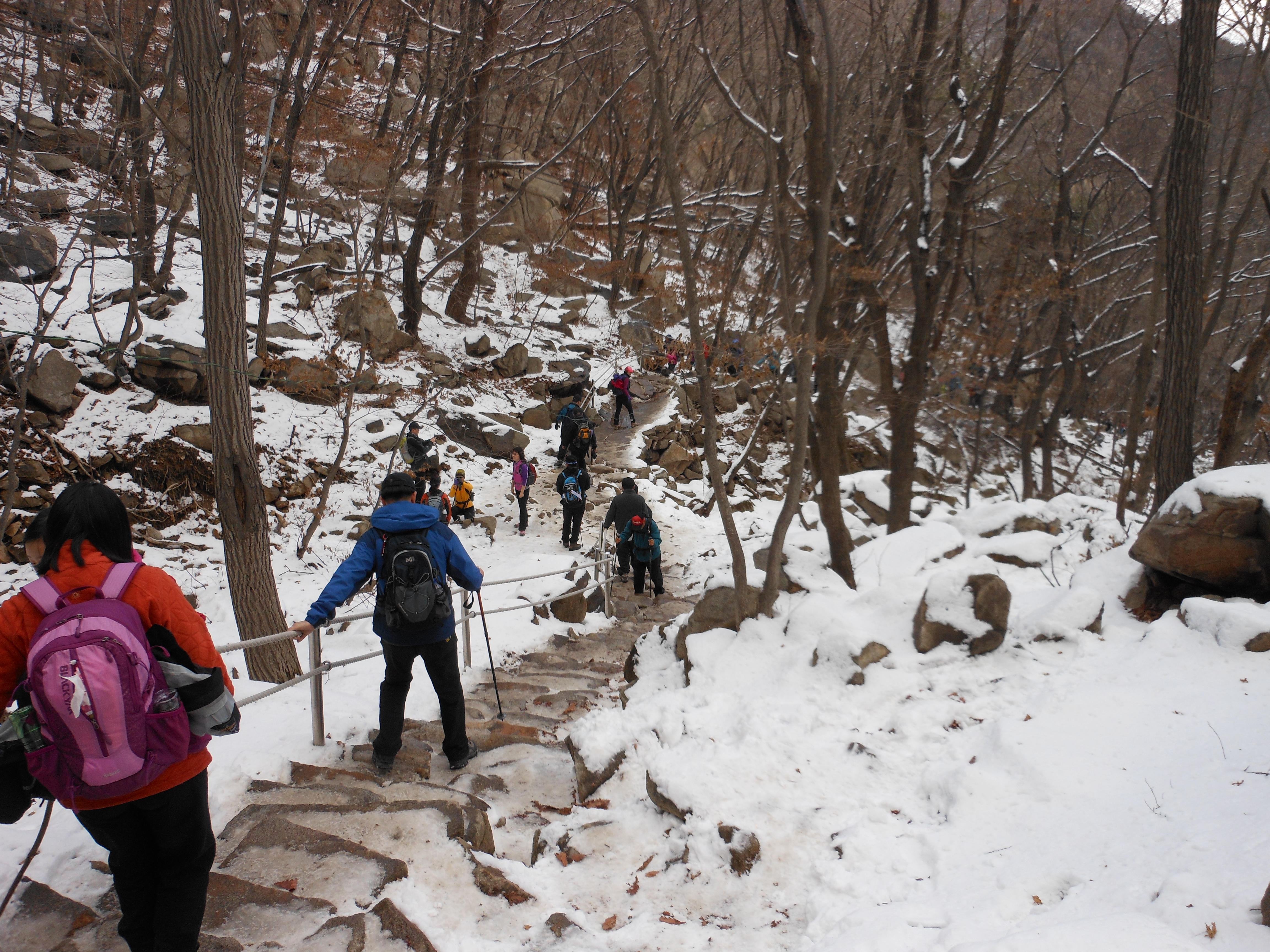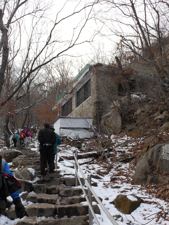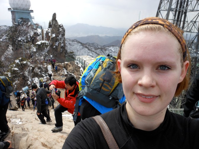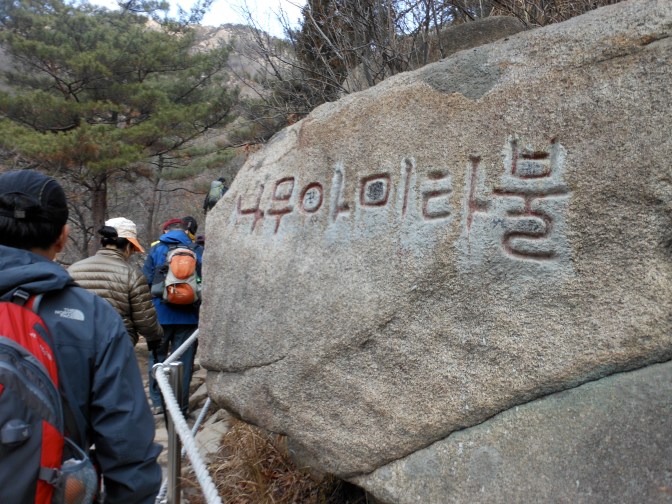 629 meters above Seoul, I scrambled up the last rock to the top. It reminded me of my first fourteener in Colorado back in August, down to the biting cold wind and slippery rocks. All the Korean women on the mountain required assistance and made great scenes of swooning and crooning over how difficult the climb had been. The men graciously supported them, and the dichotomy of gender here had never been so apparent to me. I thudded down the rock with no assistance, and only slipped once.