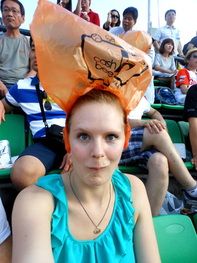 Like I said in the previous post, I am not traveling in Korea. If I skrimp by buying frozen chicken on GMarket and stop spending any money at all on activities within Korea with an eye toward some hypothetical future trip, I’m not really living here. I would miss out on the amazing things like staying up until dawn listening to classical music with friends and wearing the Korean version of a rally cap at a baseball game.