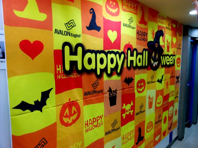 In Korea, Halloween is a blip. For most people, it must have seemed very strange to wear so much makeup and a costume on the bus to work (then again, given the tendency for Korean fashion to go to extremes, maybe not). On Monday I carried a tiny plastic Jack o’Lantern to fend off the stares. Look, lady…I’m literally carrying my cultural difference in hand. I’m not some new and terrifying incarnation of a foreigner. Just an English teacher on her way to a Halloween party.