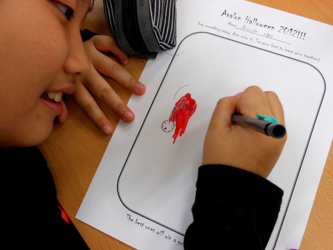 Some parents didn’t see the point of having fun, either. One of our mommas called us up to complain about the concept of a Halloween party at the hagwon. Shouldn’t they be studying? Shouldn’t teachers be ramming more TOEFL preparation down the throats of eleven year olds, even though they just took their semester test? Who will think of the children?! She refused to allow her daughter to attend on the grounds that it was a waste of time, but failed to realize that only one of three contact hours was spent in Halloween mode. Two thirds of the TOEFL and teaching was still intact, but she knew better. If anyone was going to waste her child’s time, it was going to be her. Besides, childhood isn’t for fun. It’s for studying.