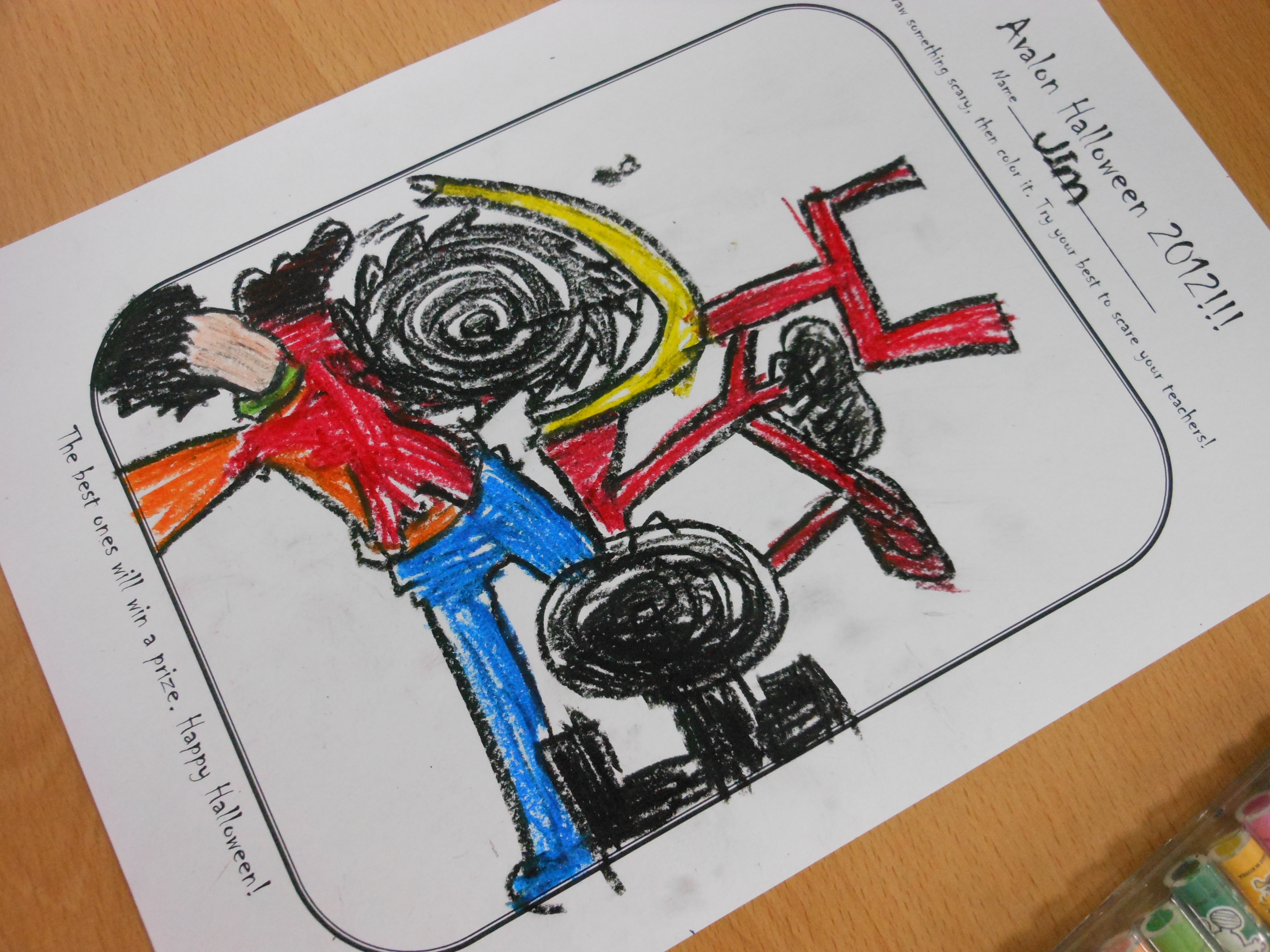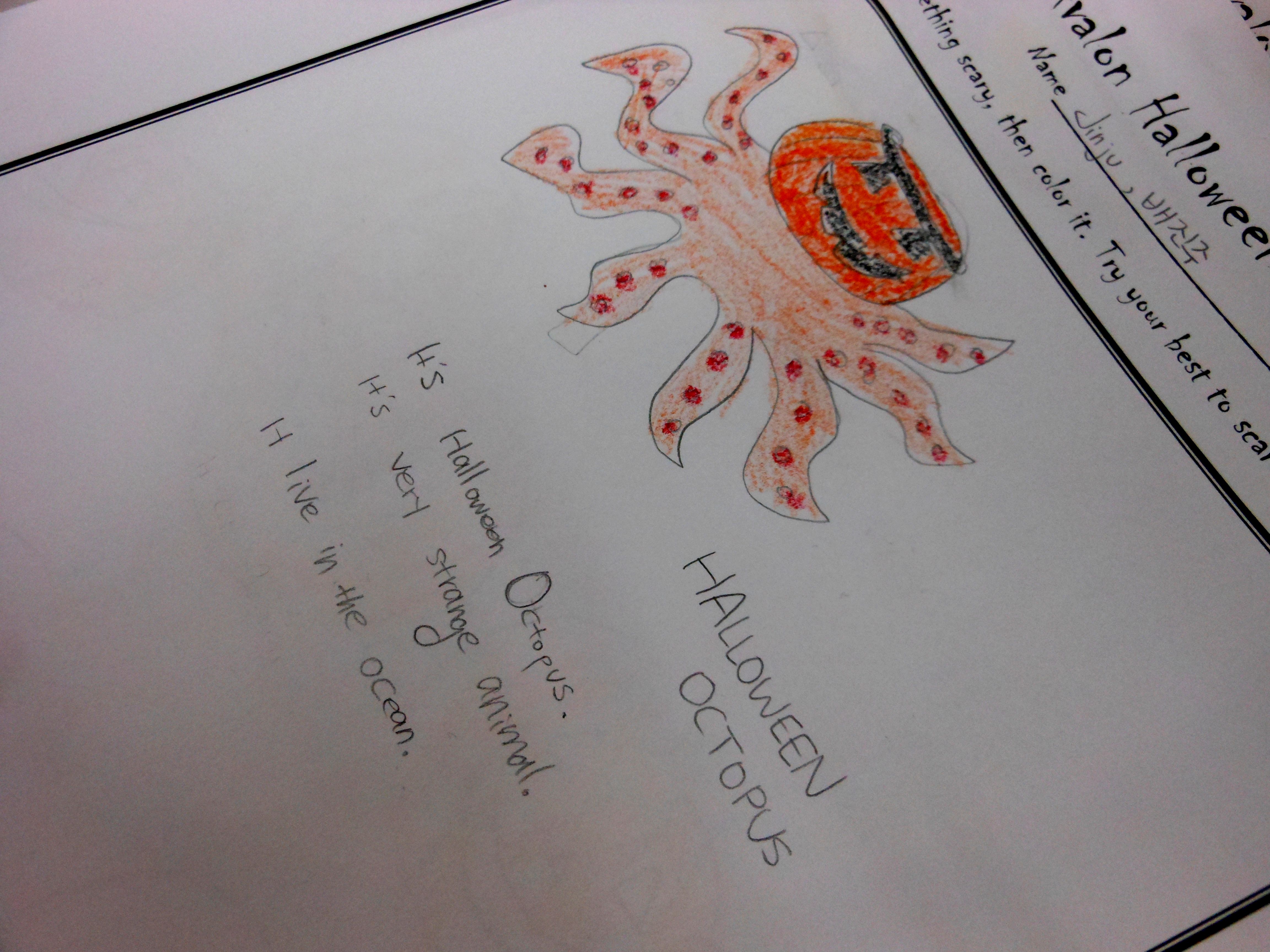 Halloween in a hagwon means a Prezi about how the holiday came to be, some spooky videos, and a scary story writing contest. We wore awesome (read:goofy) costumes, This resulted in wide-eyed stares from the students and giggles about how ridiculous we looked. To be fair, we did look a bit off as a gyspy-pirate fortune teller, a two-faced penguin, a purple witch, and Avalon Man. The worst of the day was to walk to the shared toilet down the hall past the stares of the dental patients and daycare with whom we share our floor.