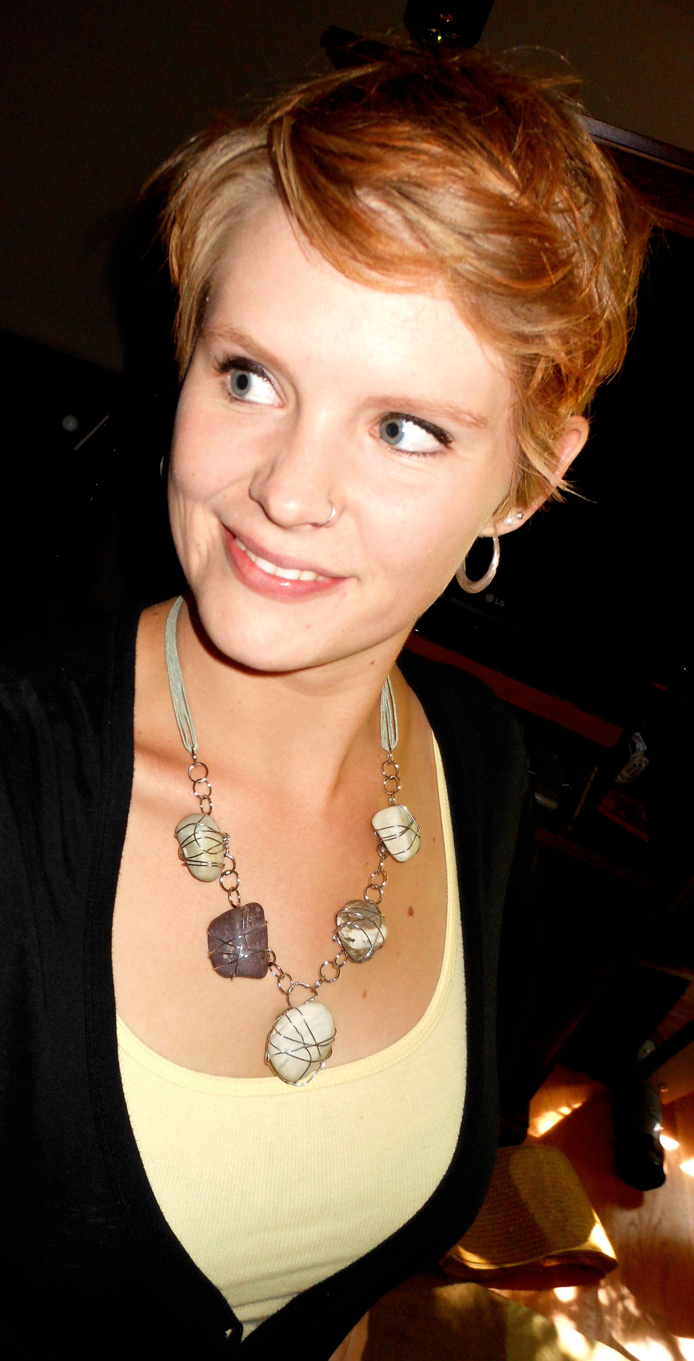 The necklace itself is made of wire I bought around two years ago, some hemp twine of unknown origin (but roughly the color of the waters at our ashram), a few chain links, and a clasp from Nomad in Boulder. It’s heavy. It’s chunky. It’s a little bit messy on the back of the stones because I got frustrated. But this is what it looks like on…