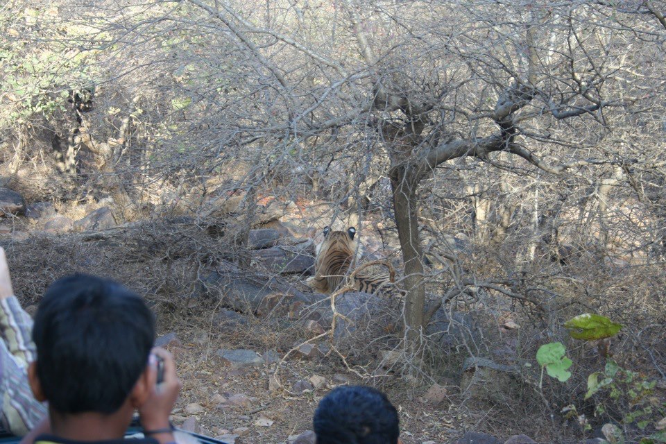 I nearly fell out of the jeep at one point because the driver slammed it into 1st without warning me (I was standing up on the back seat). I was afraid the tiger would eat me! But he was just laying there, annoyed with all the humans being loud and interrupting his morning nap.