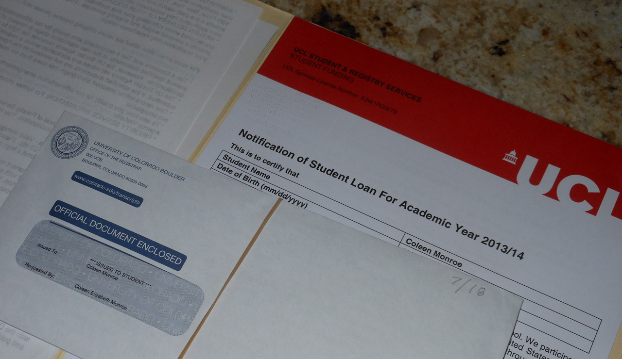 Don’t worry, I’m a professional at this. Italy, Chile, Korea, India and now the United Kingdom. I’ve even started putting a section about my bureaucratic expertise in my CV. I’ve applied for at least one visa per year, every year out of the last five. The most difficult so far was the process to obtain legal residency in Korea, but I have to say that the UK Tier 4 process is right up there in complexity! The biggest problem was that there is not a consistent or consolidated list of what one needs to apply anywhere on the UKBA website. I bounced from department to department at UCL asking questions, and no one seemed able or willing to answer.