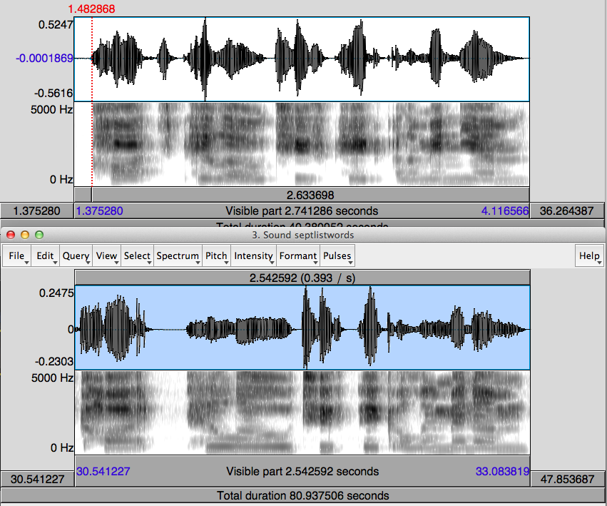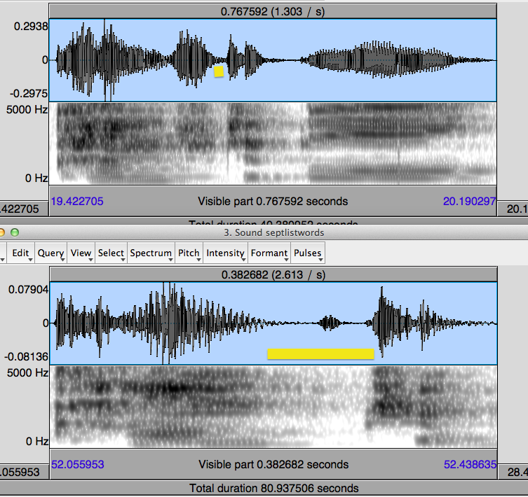 To analysis! Firstly, it seems that some words are drifting, although I sound very Statesian overall. I took the word lists from September and the one from today to run through Praat, the phonetics software. At first glance, not so different.