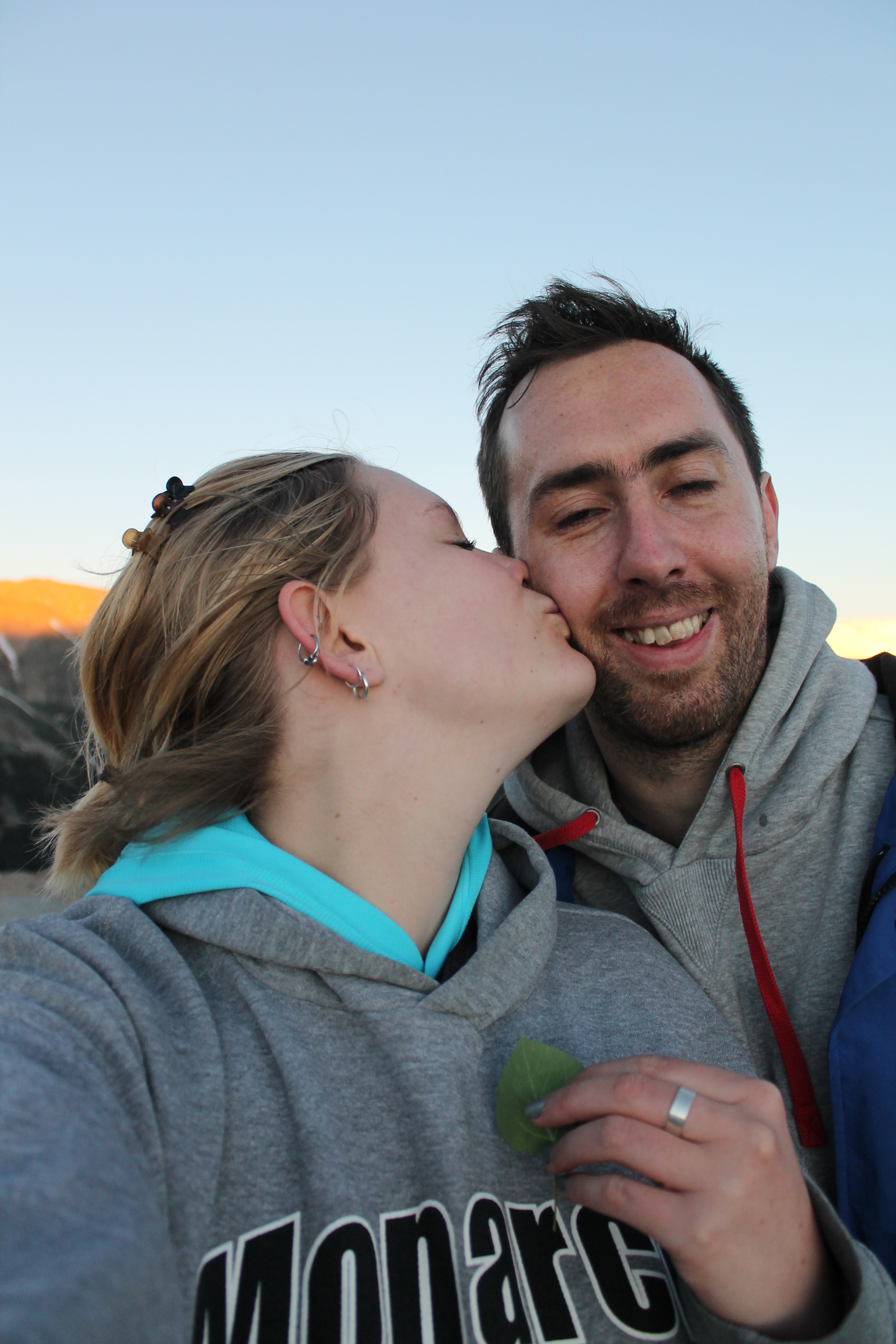 Now, my left hand will never be naked again. I’ve been wearing the ring since yesterday at sunset, when Russ got home. I can’t stop looking at it, twirling it in the sunlight to watch is shine. I love the design even more now. It feels just right on my hand. So happy for this new, if short, period of our lives together. So happy to be a fiancee.