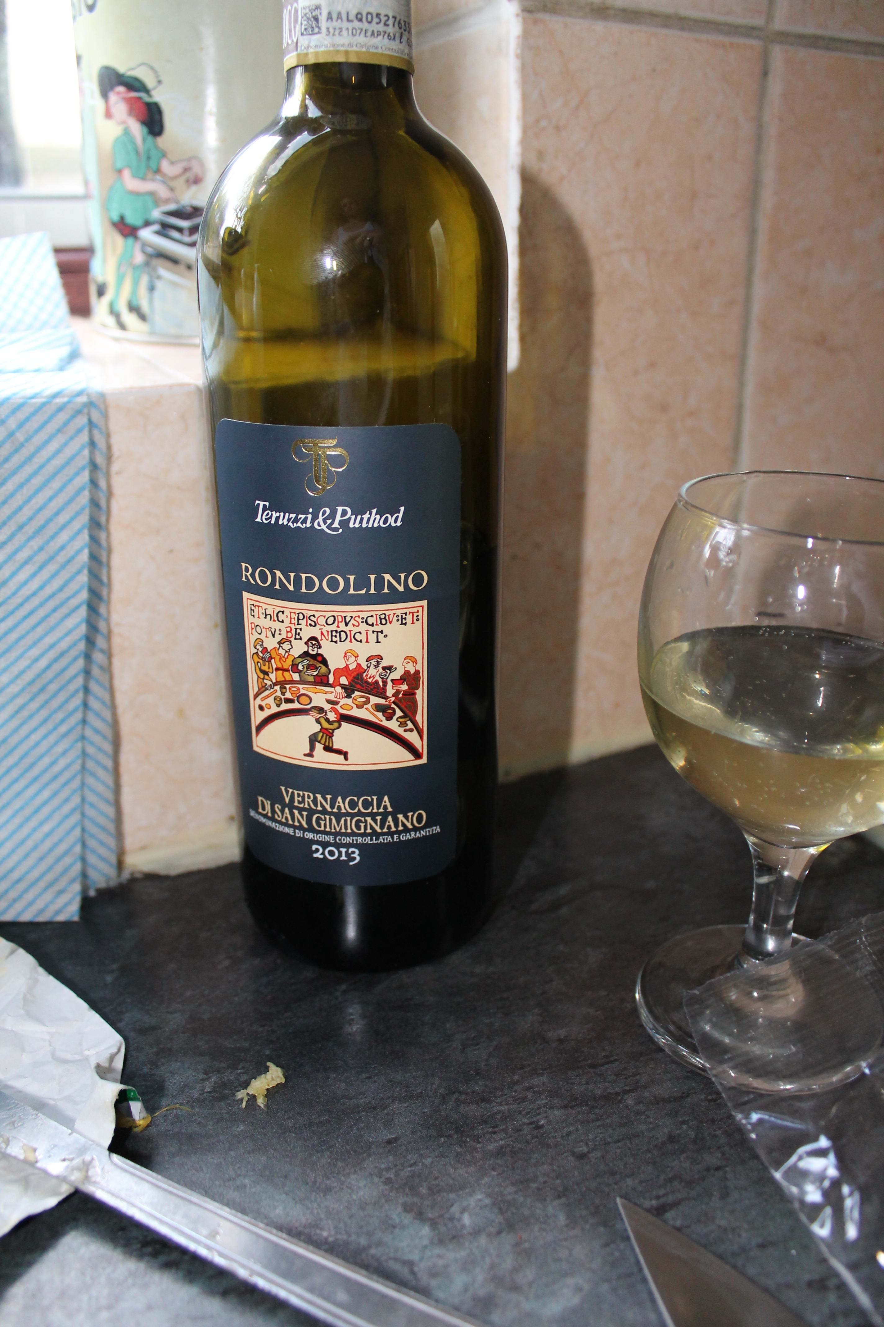 I bought some of the paper DIY garlands and assembled them today, in the fading autumn sunlight. Tried and failed to find wedding shoes at the largest mall in Europe. Made a fusion green curry with roast potatoes and the first baked pear dessert of the year. I found the Vernaccia in Waitrose and had to get it as a tribute to my 2007 self.