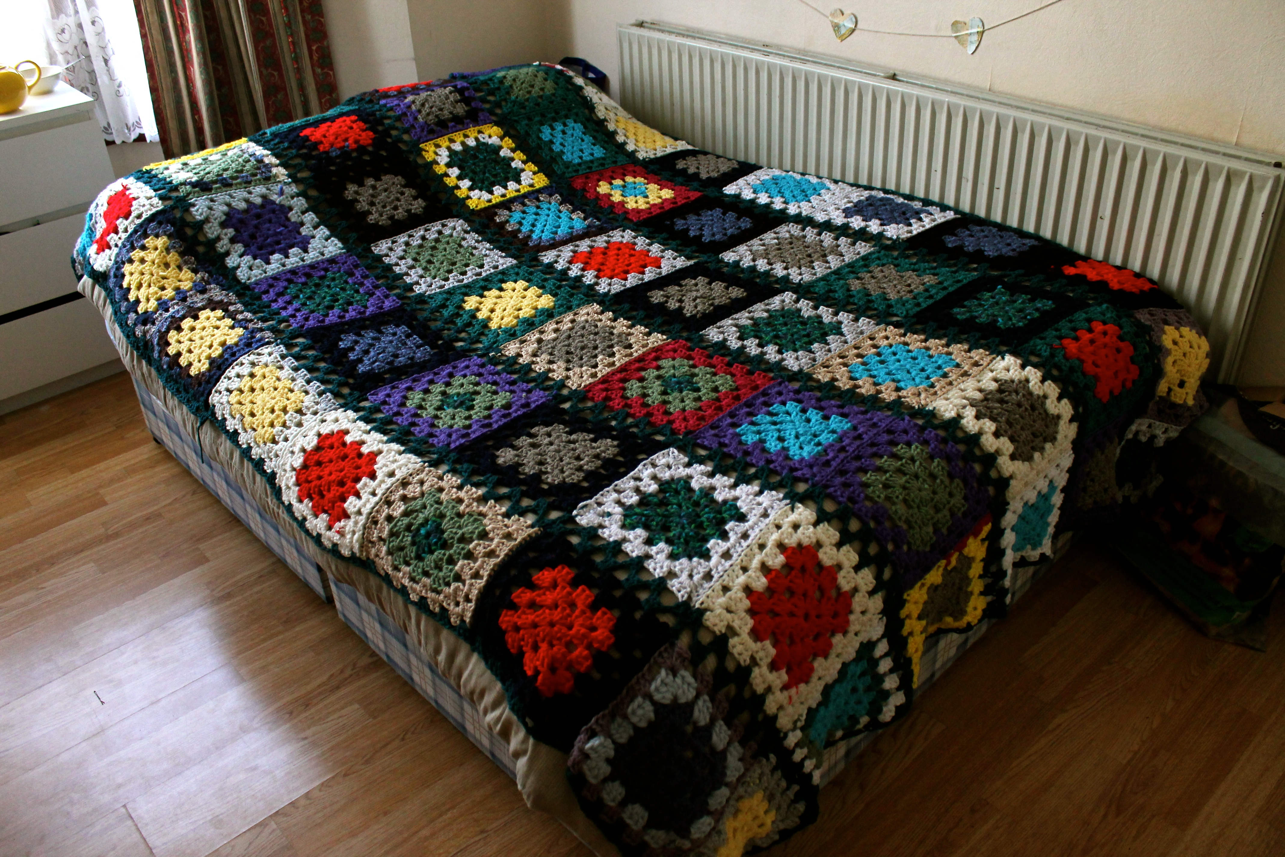 I carried the squares in my backpack across Asia, through China and India and onward to England for the first time. I worked on it while I applied for my Tier 4 visa. I worked on it while I struggled through the first few months of living in England. I worked on it when we moved into our own room. I worked on it and joined the squares while I tools breaks from writing my MA dissertation.