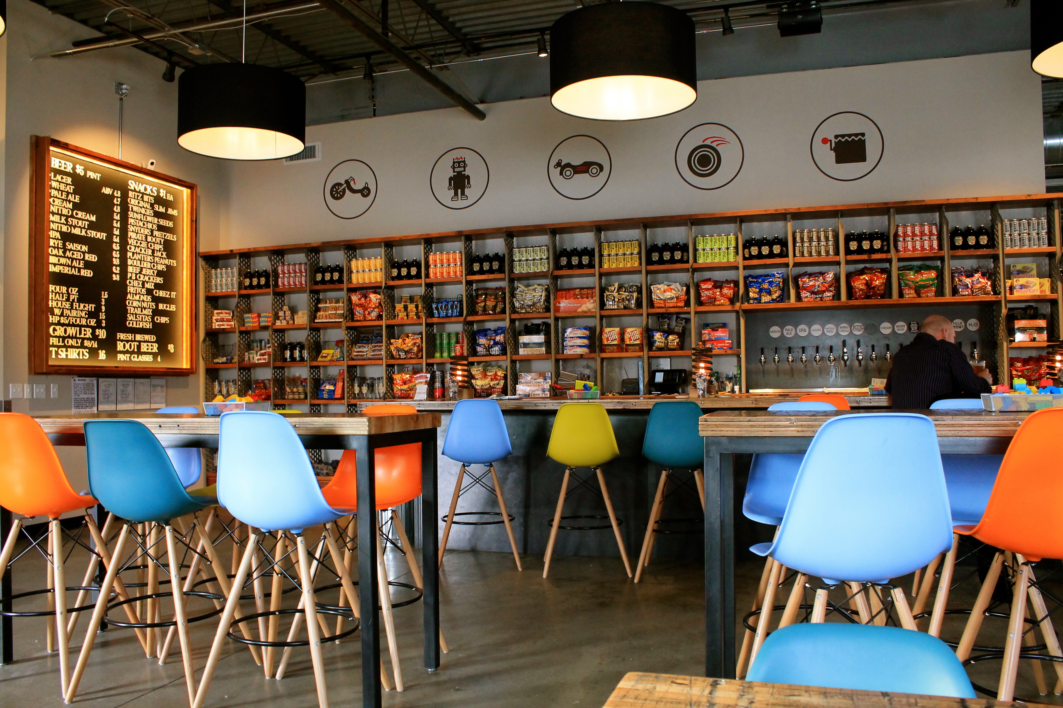 Simple pricing scheme. No long descriptions of the beers on the board. No IBUs. Lots of nostalgic foods populating the shelves behind the bar, including Twinkies and Spam. Well-built, apparently handcrafted space. I especially love the lights on the bar, and were they not bolted down with welded nuts, I’d love to take one home.