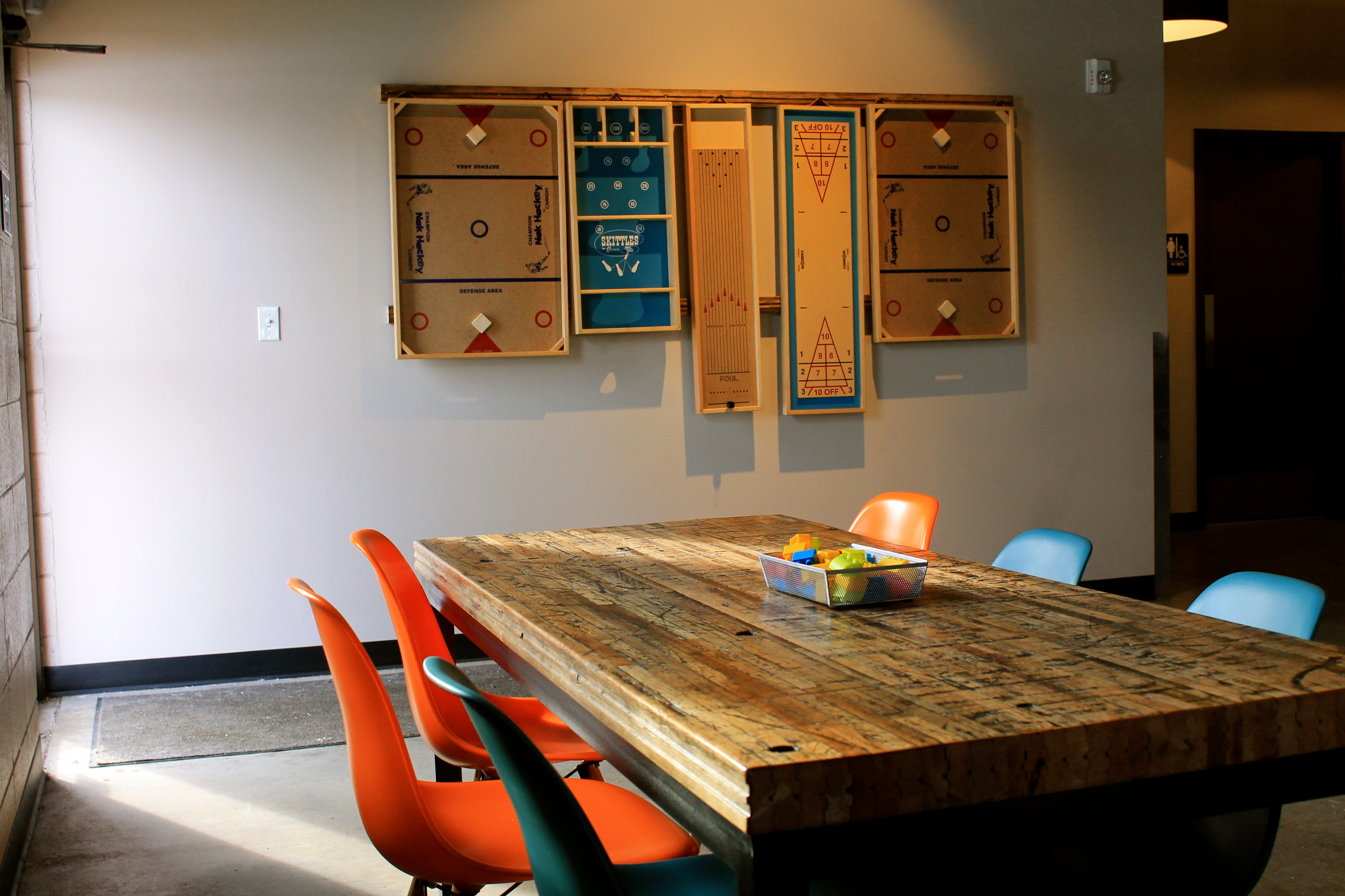 Since this is one of the newest breweries in Boulder, it has a lot to live up to. Everything is quite clearly brand new, and well-designed almost to a fault. I particularly liked the giant board games hung from leather straps on the wall, ready to play at any time. The blocks on the tables are a great touch, which Russell appreciated greatly. Beer, toys, and early 90s hip-hop and French rap music blaring? Perfect for the under 35 crowd that seems to be moving to the area.