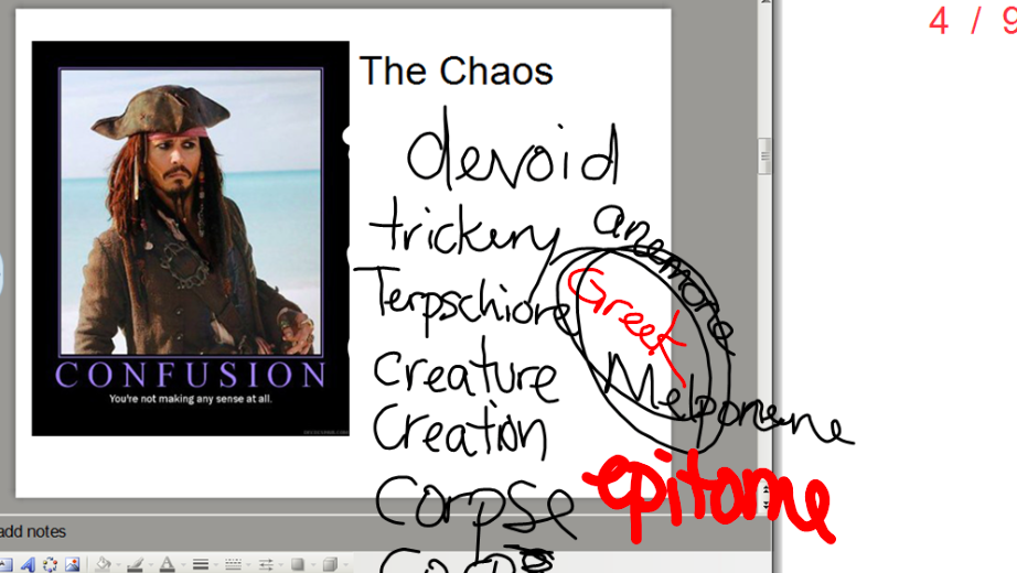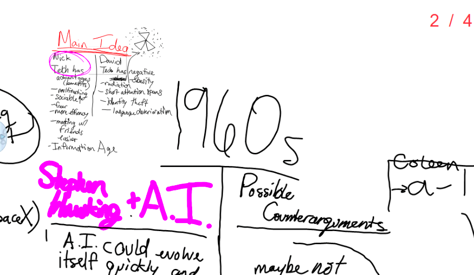 The class zooms in and out like a Prezi, but with the board and my messy handwriting.