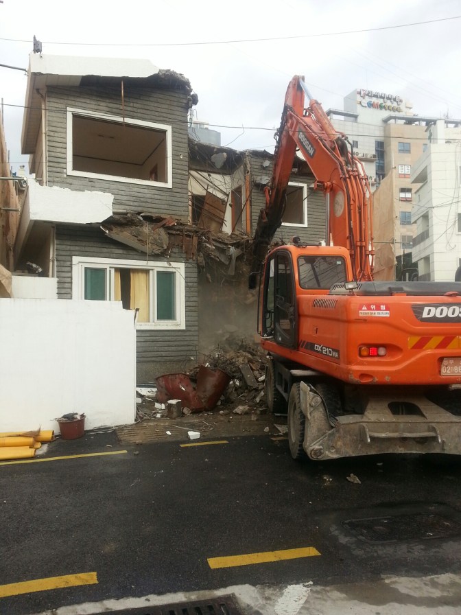 Probably it will become a horrible cube of gray like the building we now live in. If you look at our street on Google maps, this plot was a fine Korean-style moulded house, too. It was a carbon copy of the one next door.