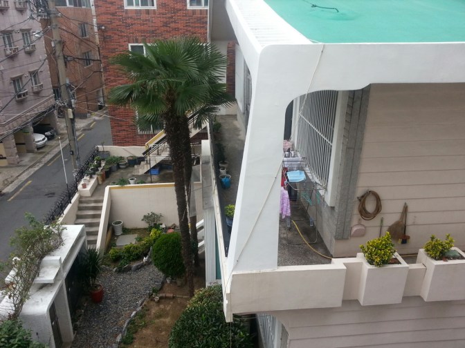 It had a white staircase that seemed to float in mid air and a outdoor deck on all levels. It was charming and cultured and uniquely Korean.