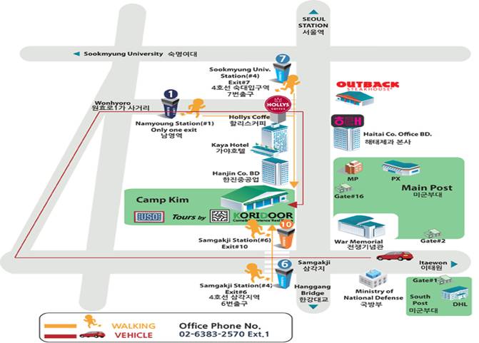 To arrive on the morning of the tour, give yourself plenty of time to get to either: Sam Gak Ji(삼각지) Station (Lines #4 and #6) Exit #10